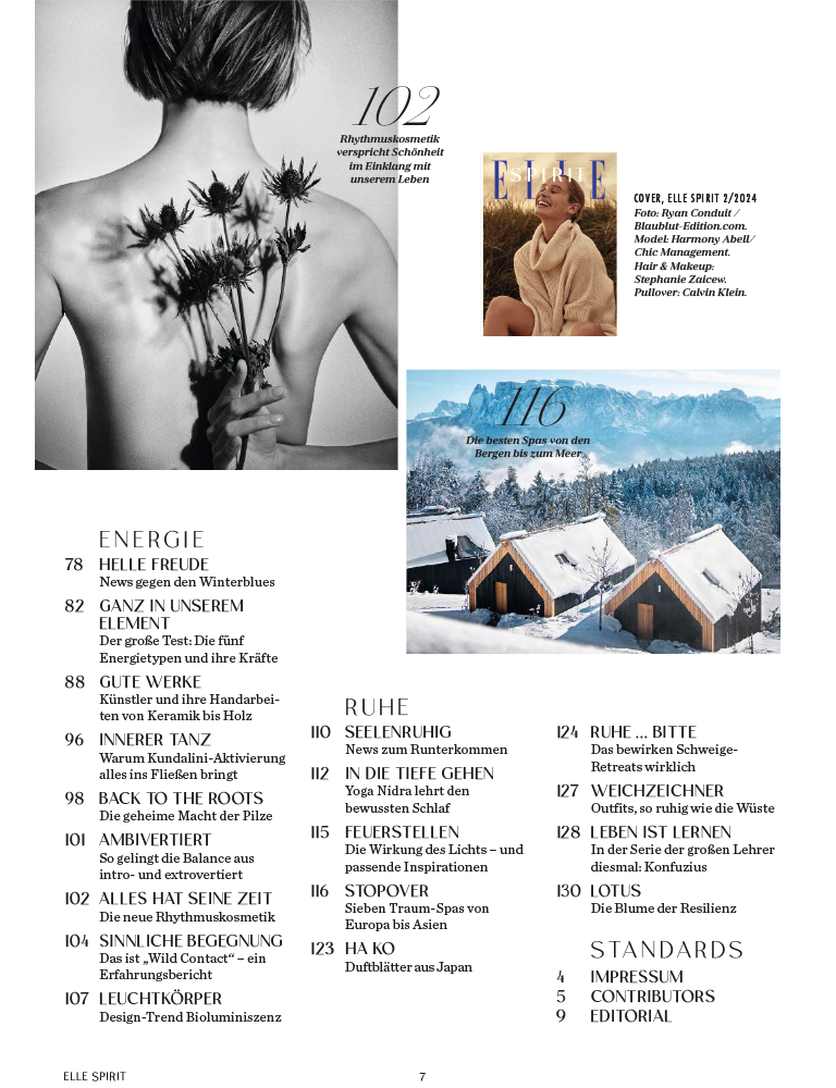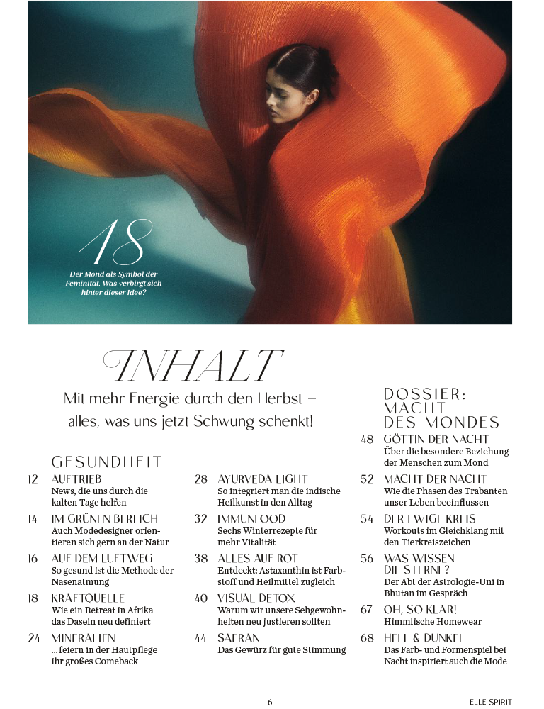 ELLE SPIRIT ist ein Magazin mit allem, was das Leben besser und bewusster macht: neue Entspannungstechniken, maßgeschneidertes Yoga, gesundes Atmen, die besten Superfoods und nachhaltige Beauty. Yoga, Mediation, Superfood, nachhaltige Beauty – ELLE SPIRIT, ein Magazin, das glücklich macht!